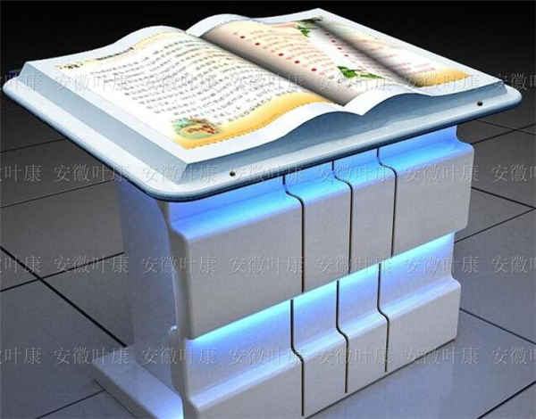 電子翻書(也叫隔空翻書、虛擬翻書、魔幻書)在參觀者面前呈現一本等離子電視方式或以投影機投影成像方式的虛擬書,參觀者只需要站在展臺前方,用手在空中揮動,即可實現翻書動作,並對頁內內容進行點擊,特有的翻書和查詢功能。