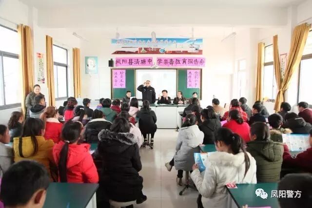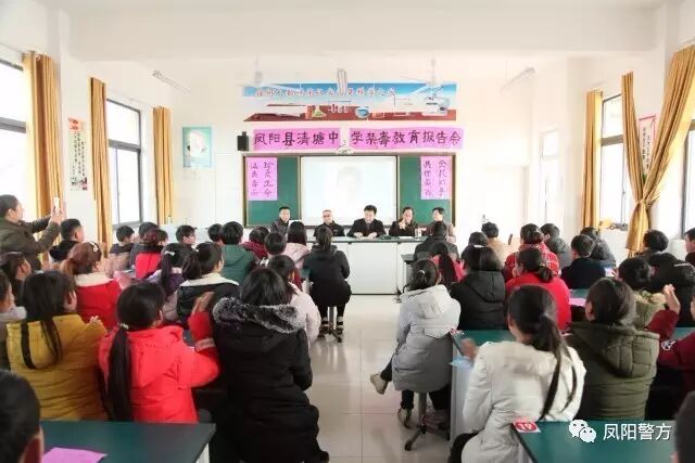 为充分发挥学校在毒品预防教育活动中重要的作用,进一步加强校园禁毒宣传力度,提高中小学生禁毒知识,在学校内营造人人参与禁毒工作的良好氛围,2月16日下午,凤阳县公安局联合县教体局深入清塘中学开展春季"禁毒宣传进课堂"活动。为清塘中学八年级全体师生及部分家长上了一堂影响深刻的禁毒课。