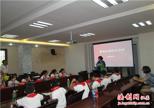 讲座中,老师详细讲解了如何识别毒品,新型毒品的种类,毒贩怎样引诱青少年吸毒,青少年怎么拒绝毒品等内容,接着与中小学生一起就讲过的内容进行了问答互动。