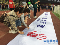 图为演唱会观众在禁毒横幅上签名。中国禁毒网发 中国禁毒网讯 5月11日晚,王力宏世界巡回演唱会徐州站在江苏徐州市奥体中心体育场举行,徐州市禁毒办联合市公安局政治部宣传处...